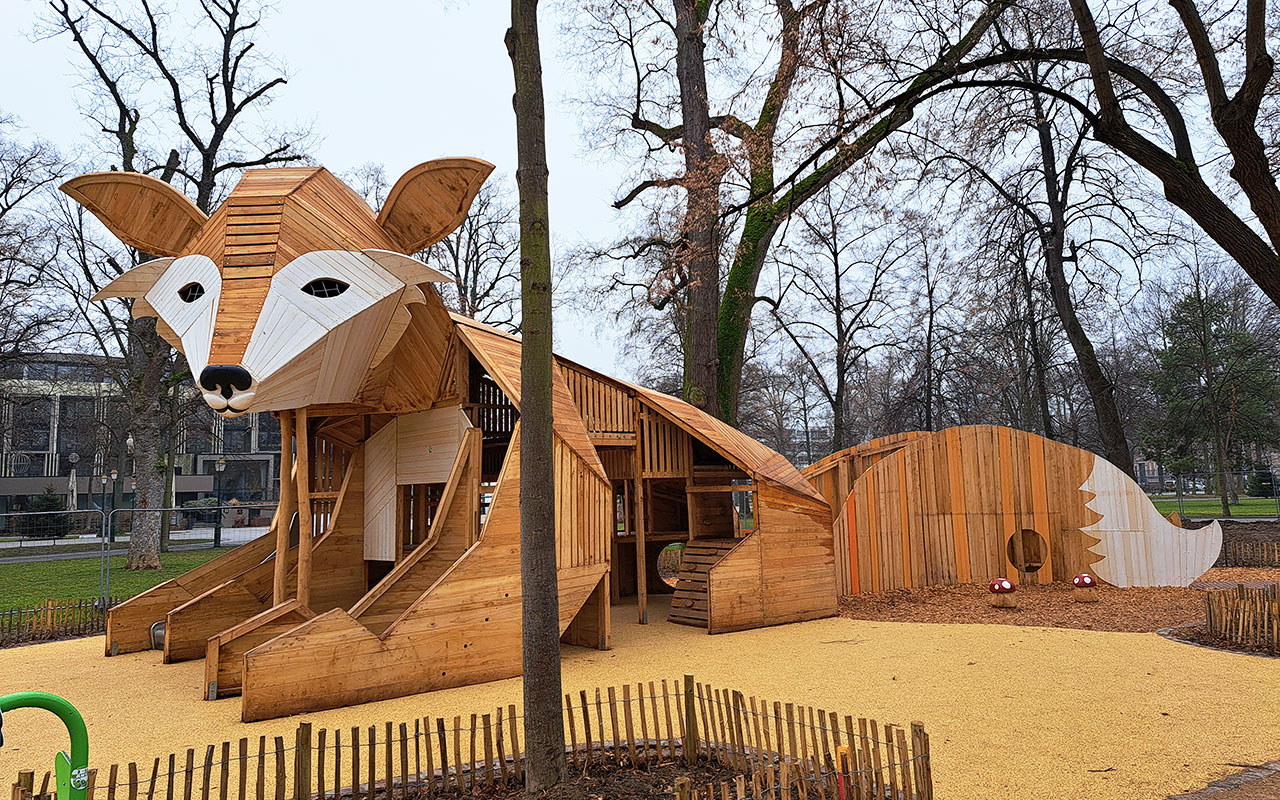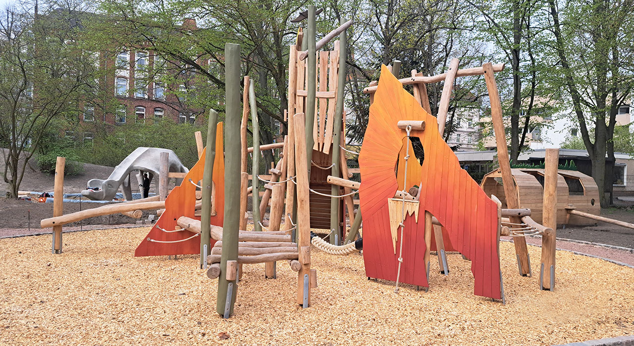 References and examples for adventure playgrounds and individual themed playgrounds out of Robinia.