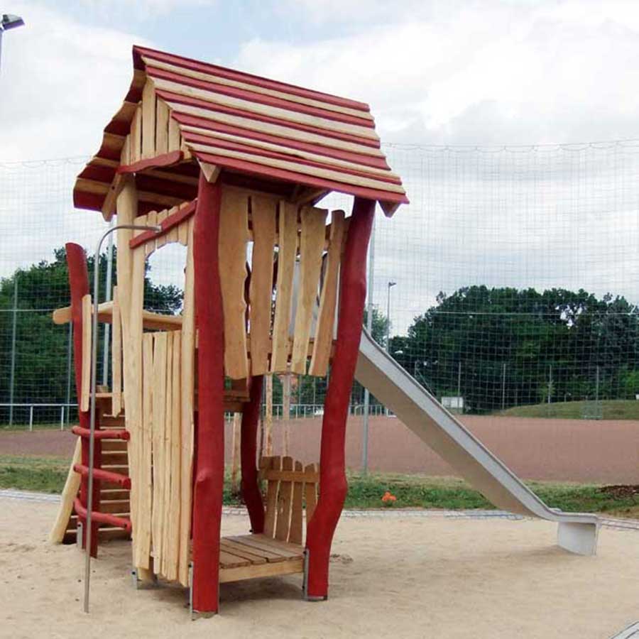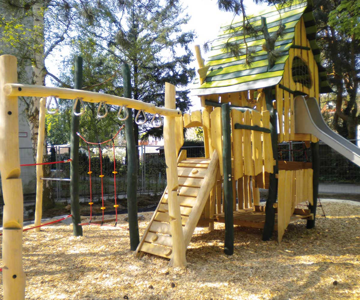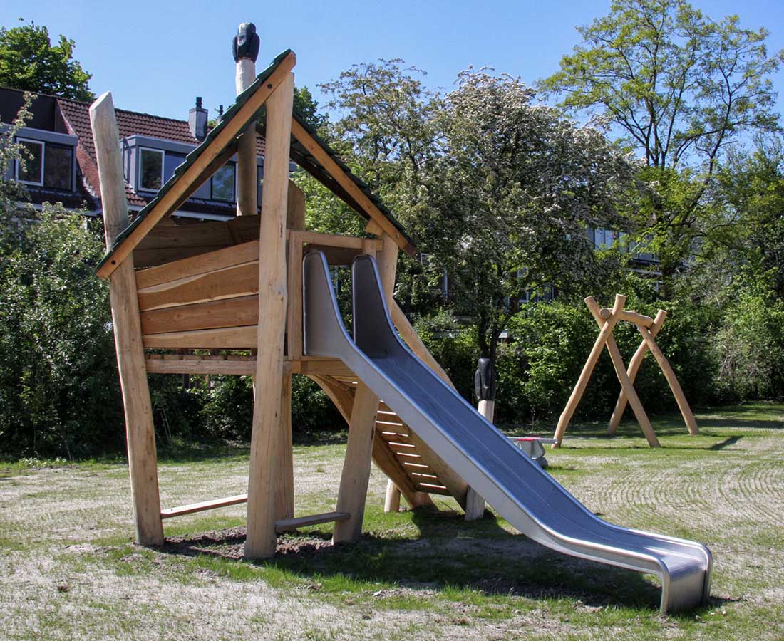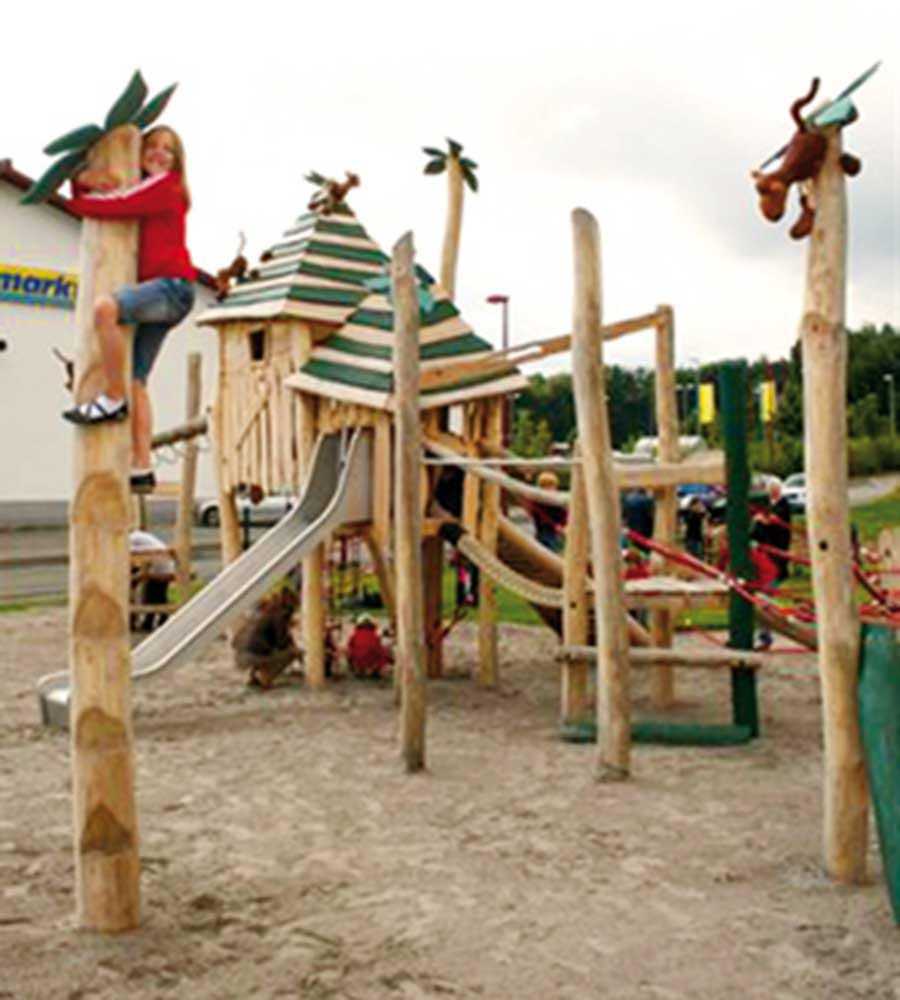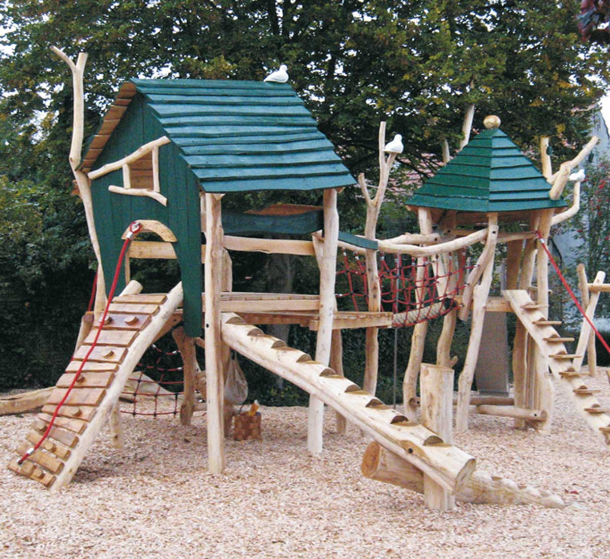Nuestras construcciones están realizadas gracias a una selección de maderas torcidas, que acentúan la personalidad de los juegos y donde se percibe la naturaleza del material. Los techos inclinados y los troncos en su forma natural hacen que cada juego se convierta en una pieza exclusiva.