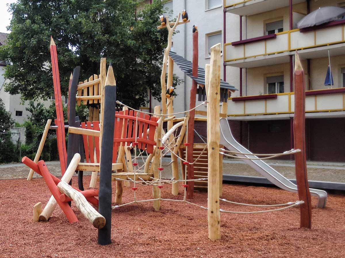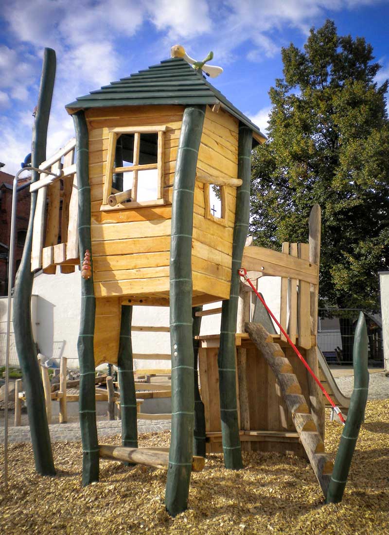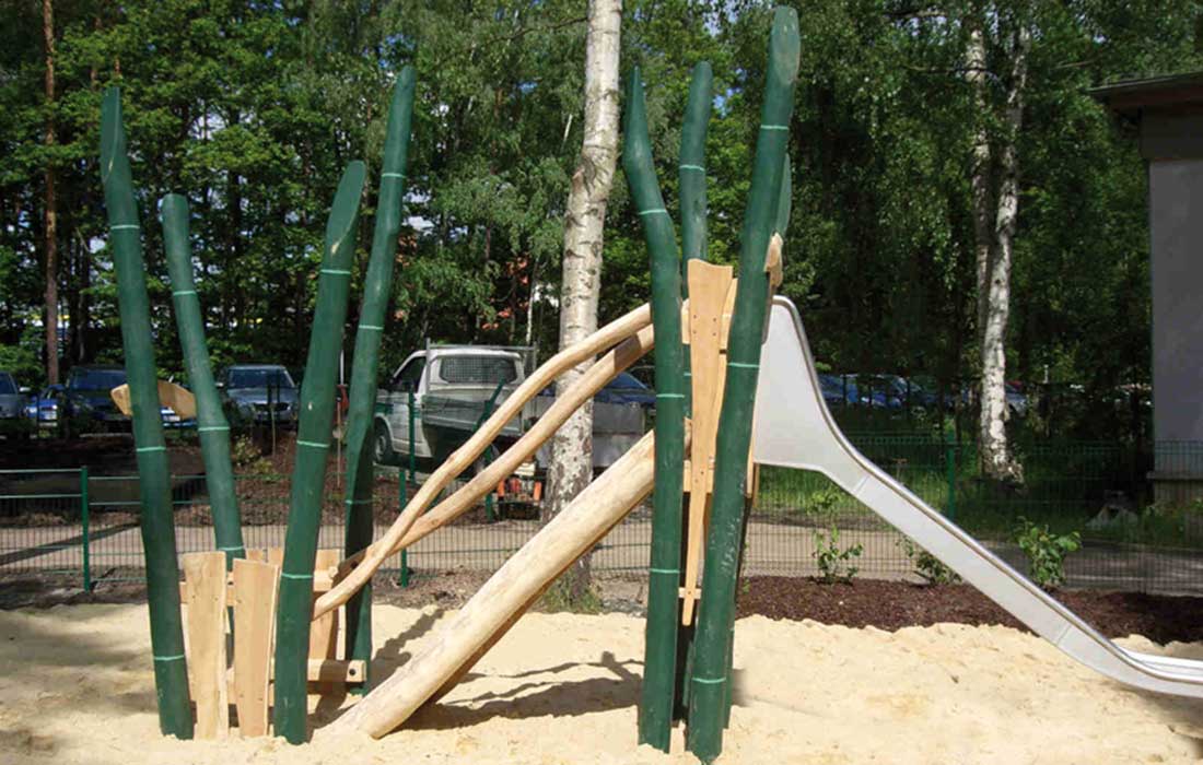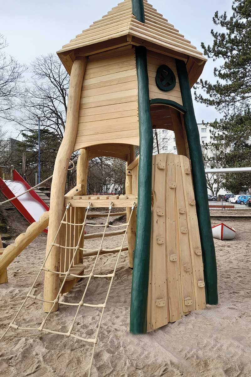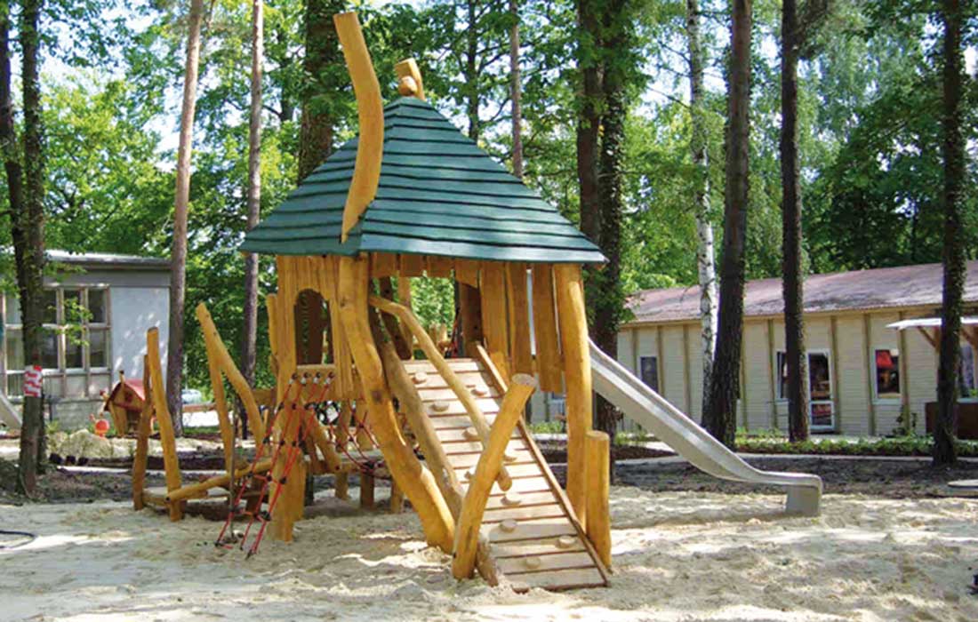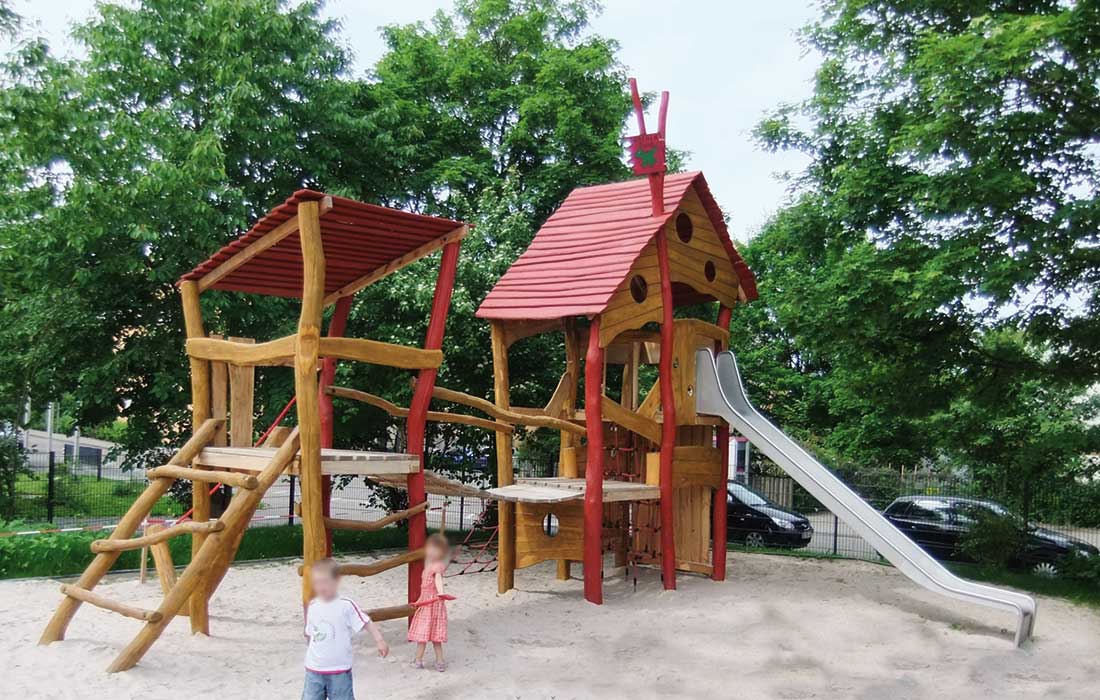 Nuestras construcciones están realizadas gracias a una selección de maderas torcidas, que acentúan la personalidad de los juegos y donde se percibe la naturaleza del material. Los techos inclinados y los troncos en su forma natural hacen que cada juego se convierta en una pieza exclusiva.