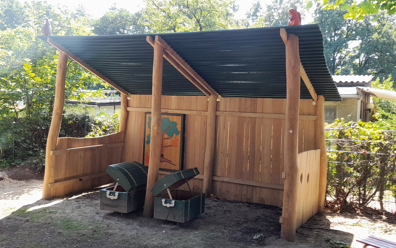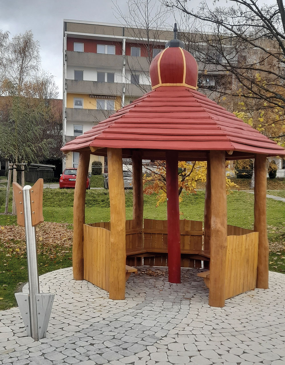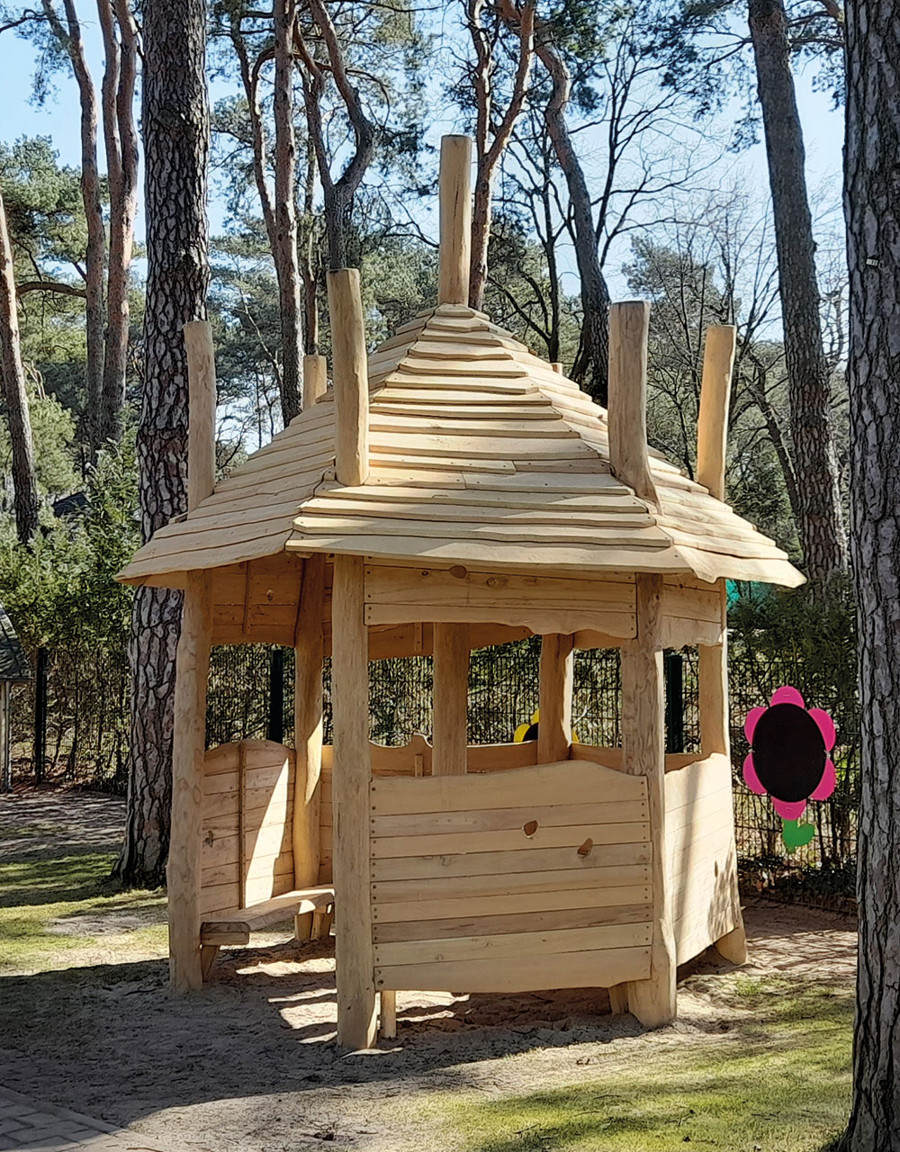 Les bancs d’angle sont un bon moyen de passer les récréations à discuter entre amis; les points de rencontre réservés aux jeunes font aussi partie de l’aménagement d’une aire de jeux.